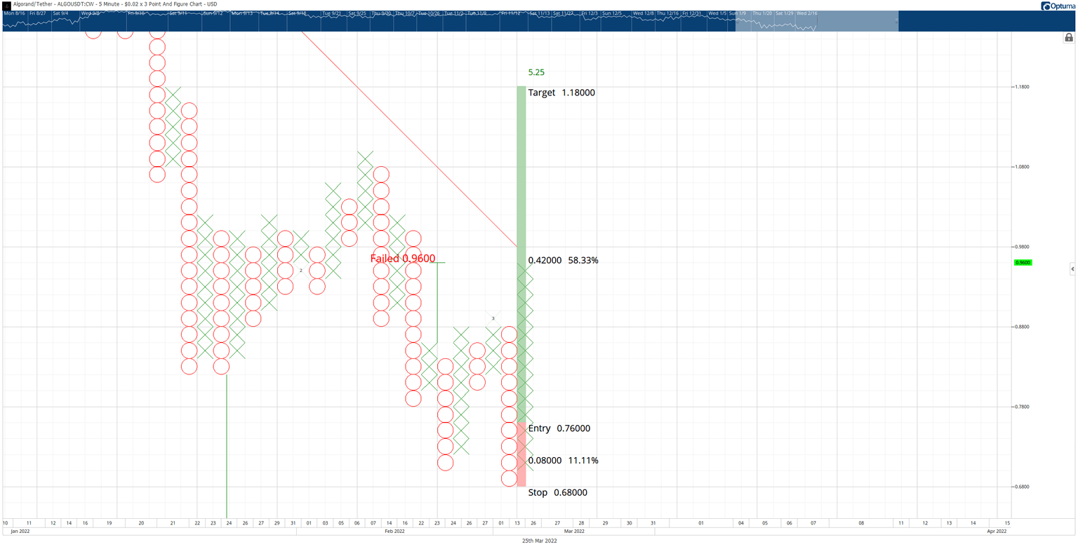 ALGO/USDT $0.02/3-box Reversal Point and Figure Chart