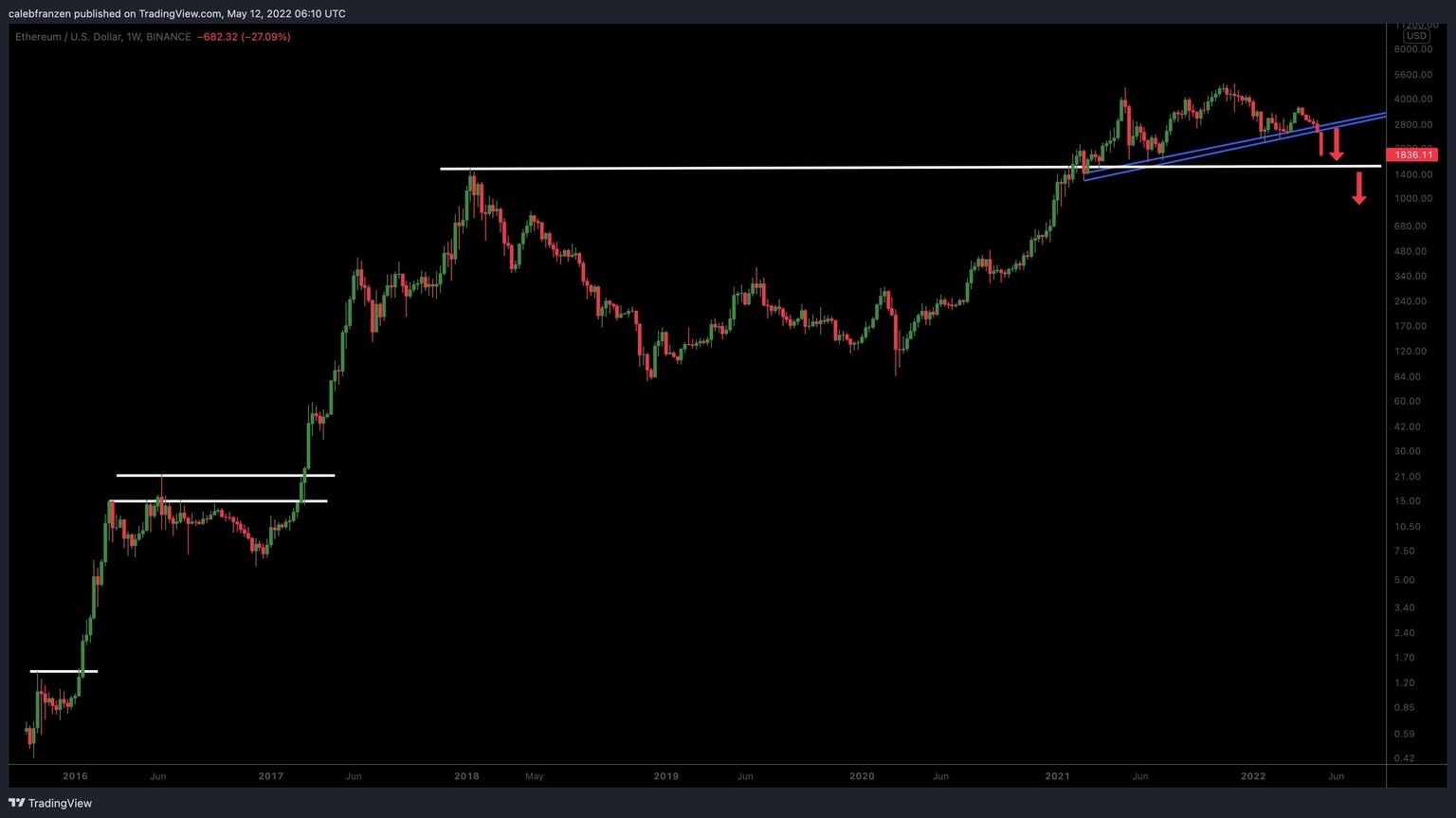 Insight into what Ether's price action may look like should it head lower was provided in the following tweet by ‘Crypto Feras’, who mused that just a few weeks ago it sounded crazy to talk about Ether falling to these levels.