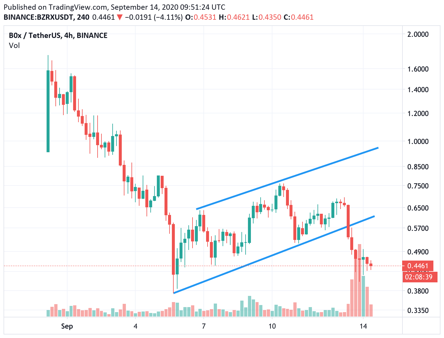 BZX, the native token of the protocol, lost nearly 30% in the last 24 hours to trade at $0,445442 by the time of writing. The coin just broke below the upside-looking consolidation channel and extended the decline amid high trading volumes. This development bodes ill for the price and implies that it may retest the recent low of $0.37 before the selling pressure slows down. If this barrier holds well, the coin may recover and retest the broken channel support (currently at $0.6154). A sustainable move above this area is needed for the upside to gain traction and negate the immediate bearish scenario. Otherwise, BZX will resume the sell-off.
