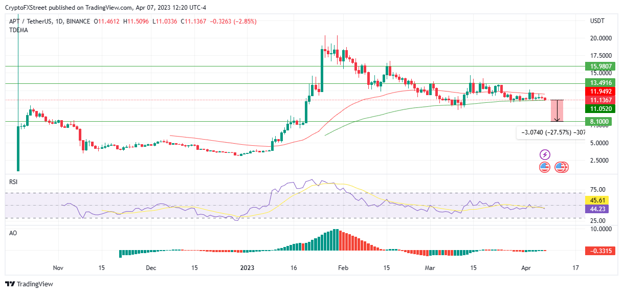 If APT bulls lose the immediate support due to the 100-day EMA at $11.05, Aptos price could engage a load-shedding gear, moving 30% south to $8.10. Investors need to watch this position as it is the last line of defense before the drains open for the altcoin.