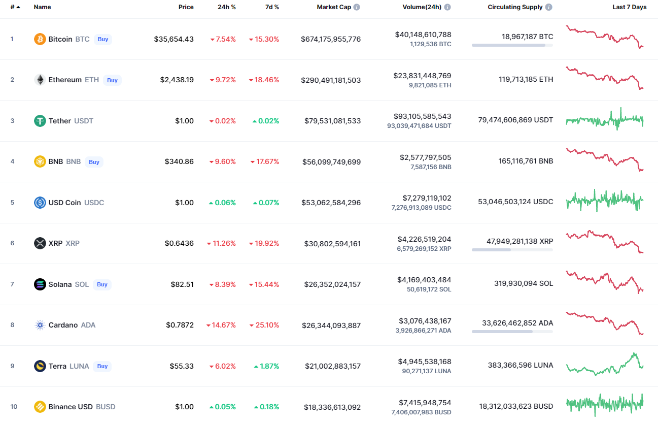 Binance Coin (BNB) is not an exception to the rule, going down by 9.48% since yesterday.