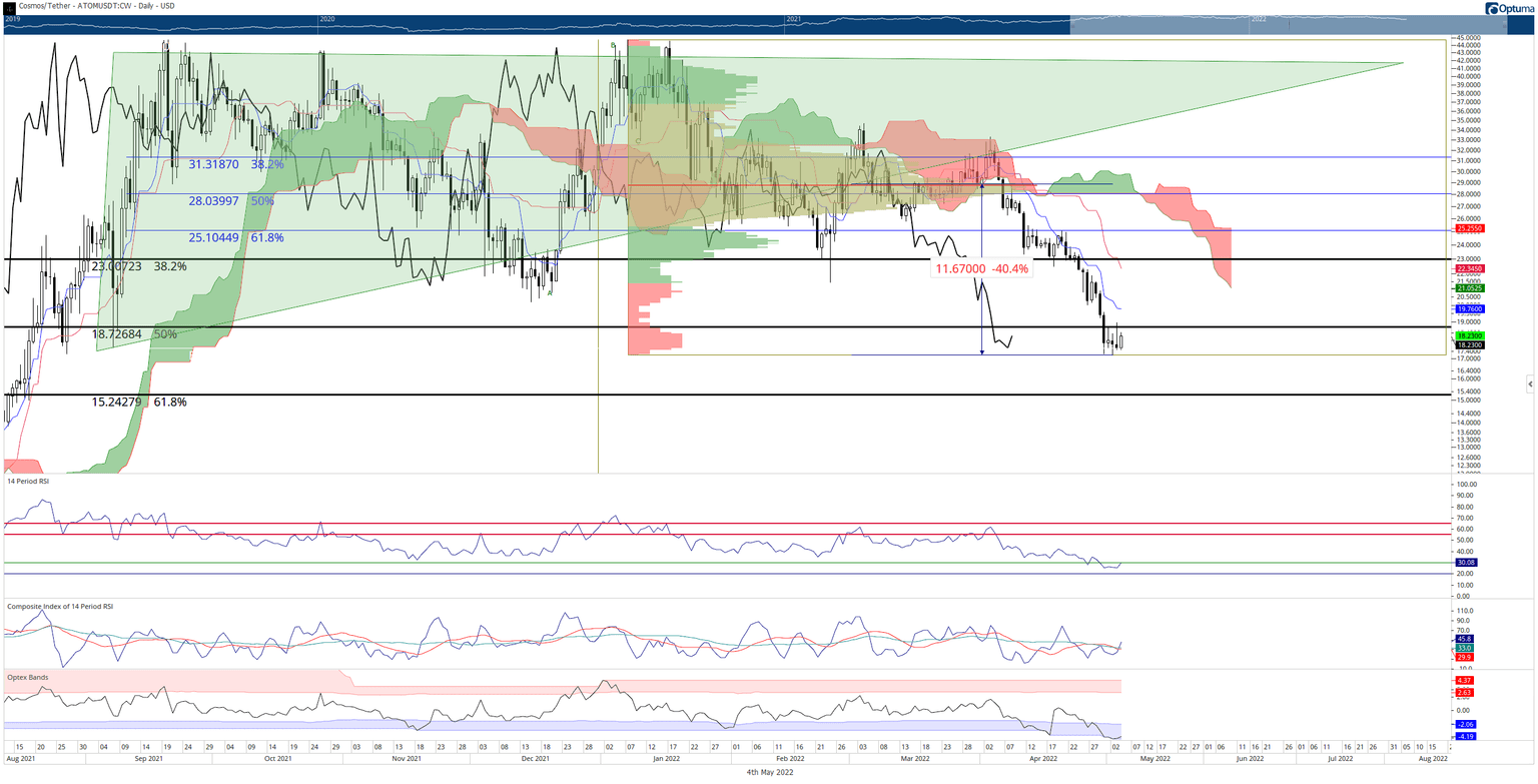 ATOM price action has faced the same selling pressure seen across all risk-on instruments. Cosmos lost nearly 40% of its value from the beginning of April to the close of April, and that trend may continue. But extremes in the oscillators may hint at some reprieve coming soon.
