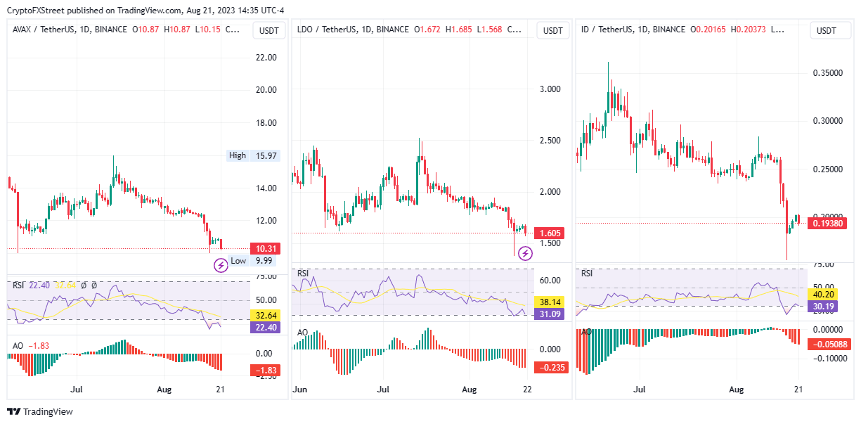- Investors should brace for a potential move, with the ensuing sell-off likely to send AVAX, LDO, and ID prices south.