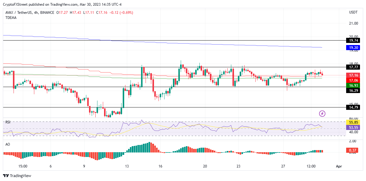 Avalanche price has been riding on the support provided by the 100-day Exponential Moving Average (EMA) at $16.93 since March 18. The altcoin lost this level between March 27 and 28, but quickly recovered after a bounce from the $16.29 support level and extended above the 50-day EMA at $17.06.