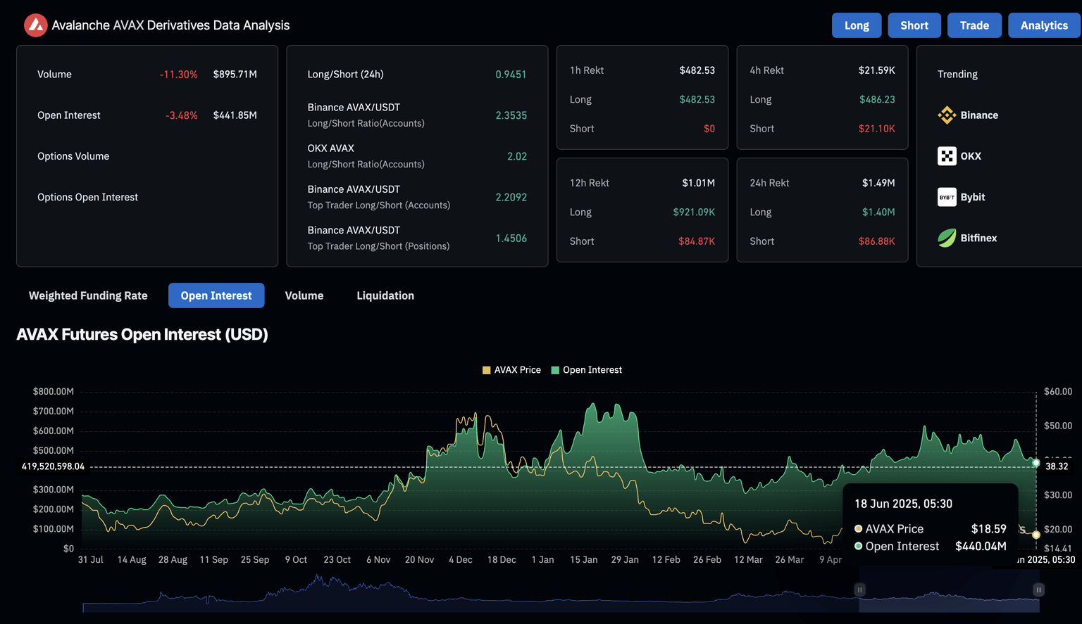 Avalanche derivatives. Source: Coinglass