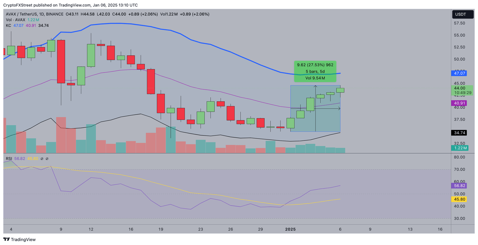 AVAX price breached the $40 resistance on Monday, driven by the crypto market's positive start to 2025. While on-chain data shows rising demand from large investors on the Avalanche network, technical indicators flash cautionary signals.