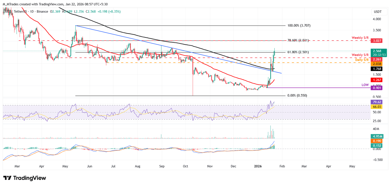 If AXS continues its upward trend, it could extend the rally toward the weekly resistance at $3.02.