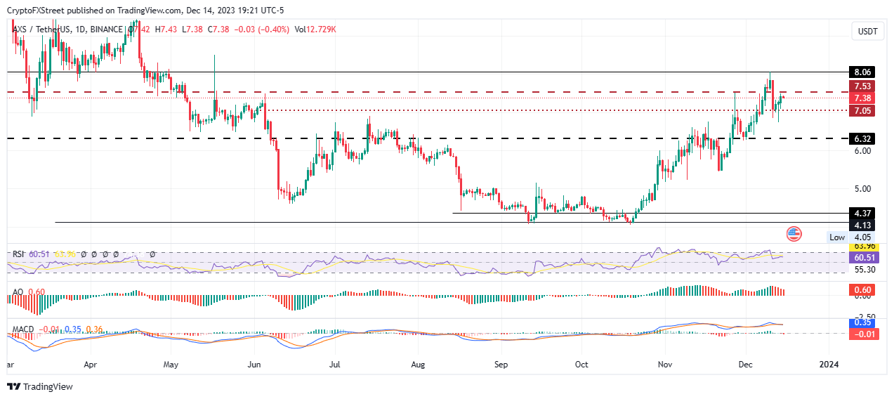 - AXS could drop 5% to $7.05, losing all the ground covered after the 12% crash recorded on December 11.