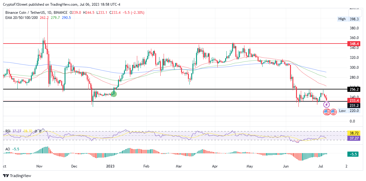 Binance Coin (BNB) price is down 2% over the last day, to auction at $233.6 at the time of writing. The fall comes after the altcoin was rejected from the $256.2 resistance level on July 3, triggering a 10% load-shedding exercise over the last four days.