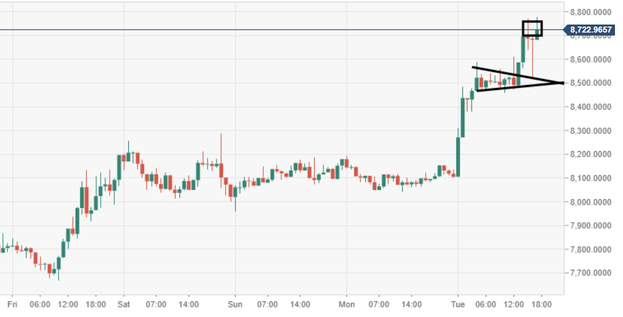 Bitcoin price has further pushed north trading around session highs, as the bulls close in on the $9000 price mark.