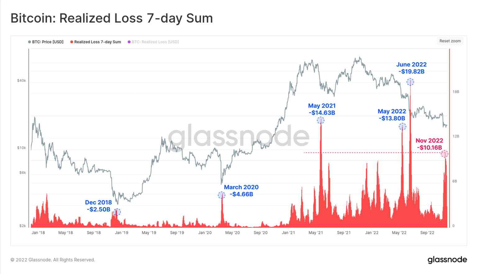 Bitcoin realized 7-day losses. Source: Glassnode