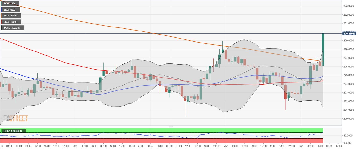 Bitcoin Cash (BCH) is moving fast towards $230.00. The coin has jumped by over 5% in a matter of minutes amid the global recovery on the cryptocurrency market. At the time of writing, BCH/USD is changing hands at $229.30, and the upside momentum is gaining traction.
