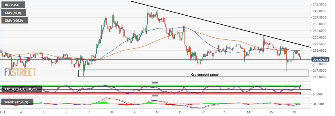 - Bitcoin Cash smashes through $220 critical level to test the support zone between $213 and $215.
