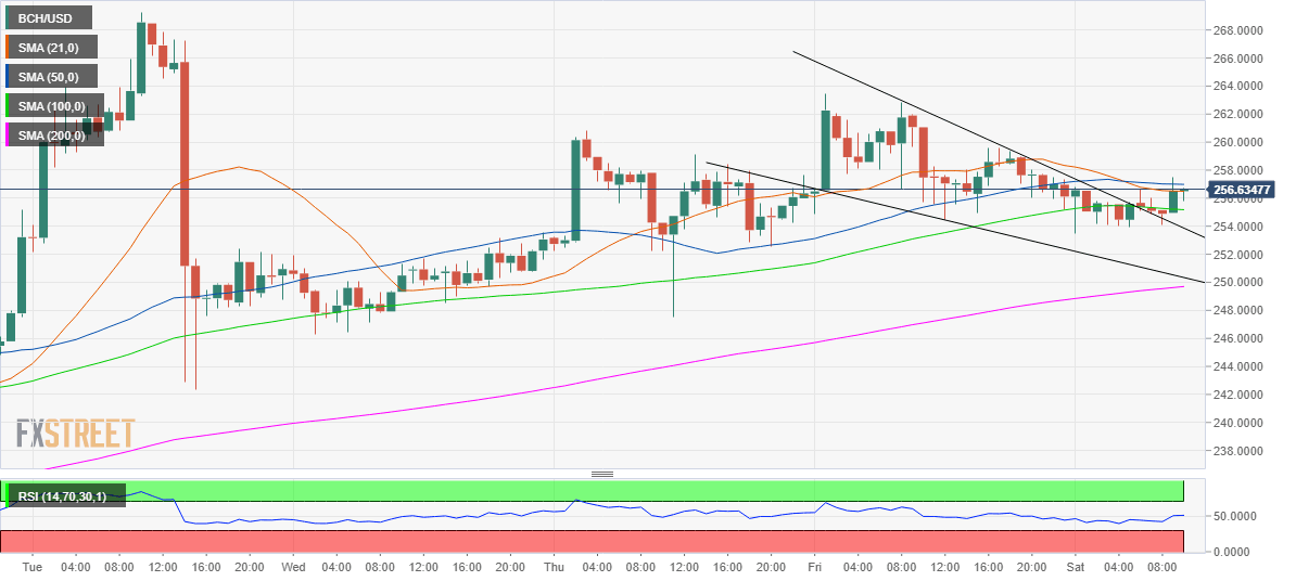 Bitcoin Cash (BCH/USD) is consolidating the latest uptick to a daily high of 257.50, having recovered losses following a dip to 253.47. The spot broke the recent side trend to the upside amid a fresh buying wave seen across the crypto market on Saturday. The bulls are now gathering pace for the next push higher. The digital asset remains on track to book about 6% weekly loss. The market capitalization for BCH/USD stands at $4.73 billion.