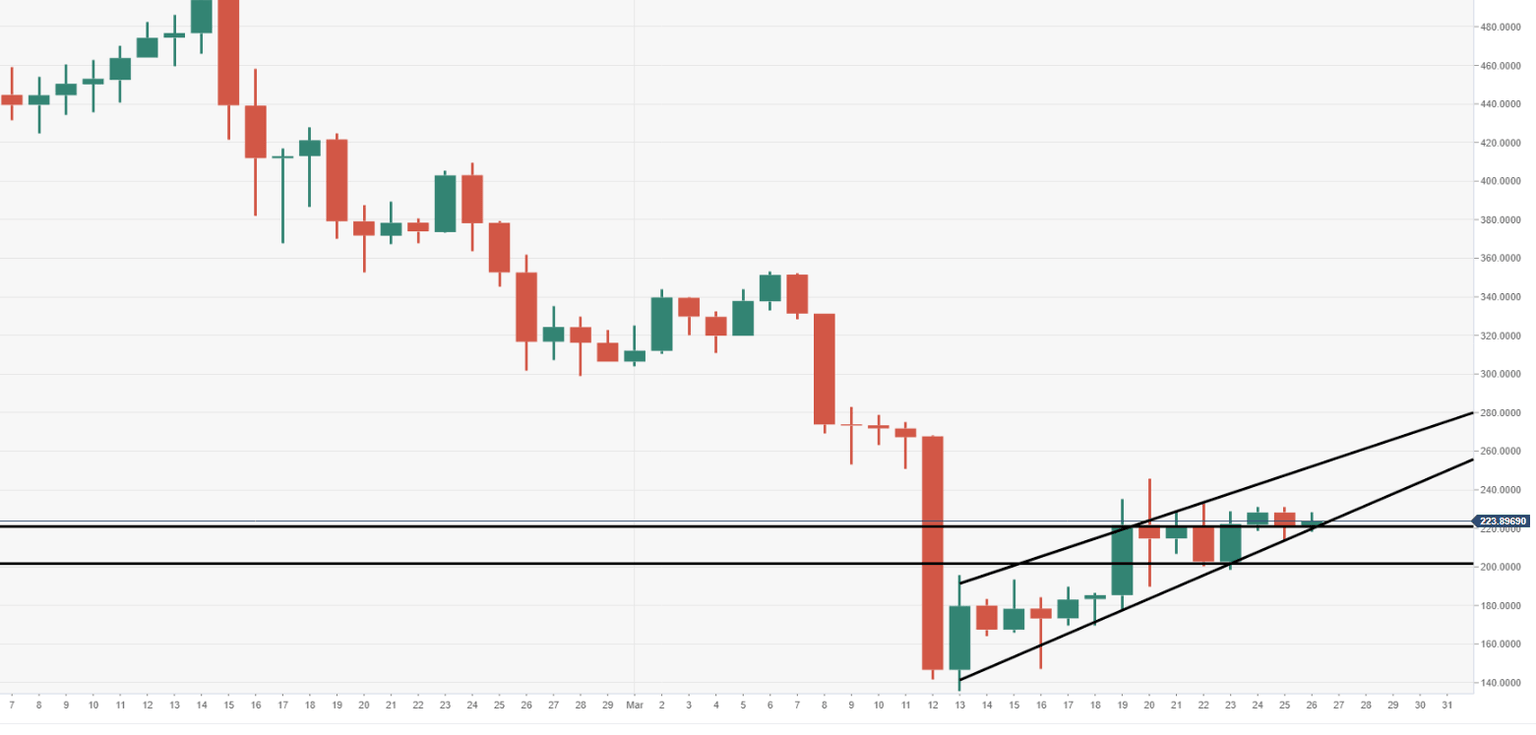 - There is still much supply within the region of $225-50 that the bulls will need to break down.