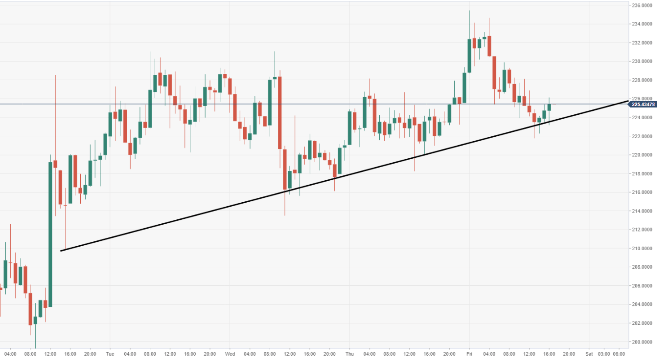 - Supply remains heavy within the region of $225-50 that the bulls will need to break down.