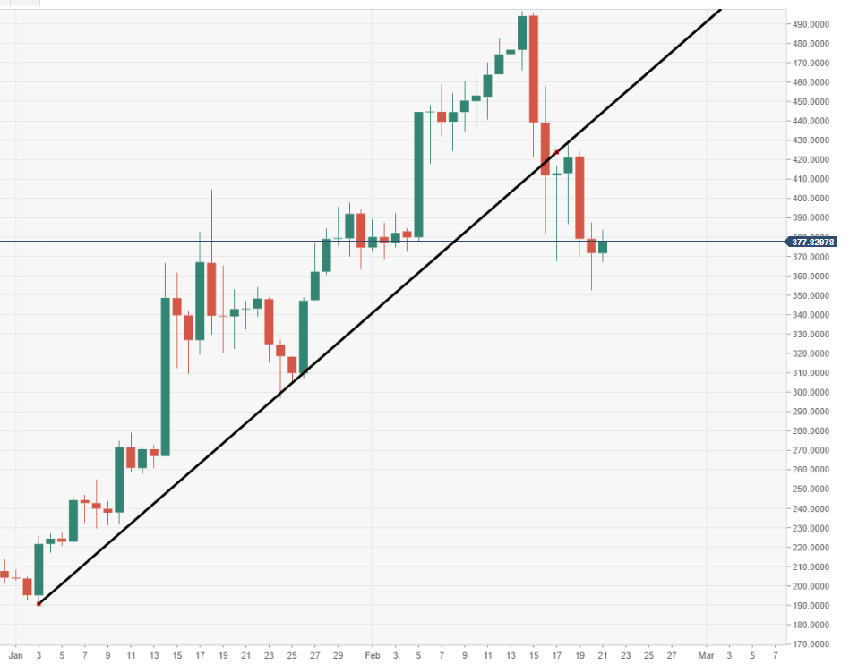 - BCH/USD has lost complete upside momentum since topping just shy of $500.
