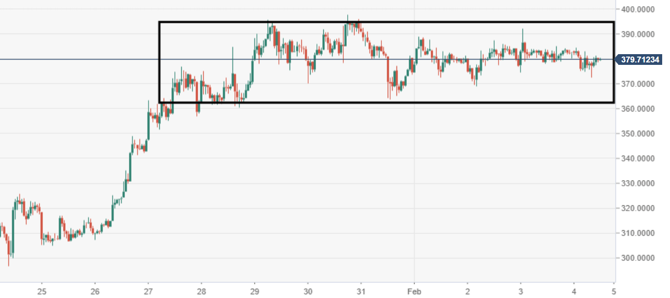 - The range remains narrow; boundary to the upside at $390, to the downside $360.