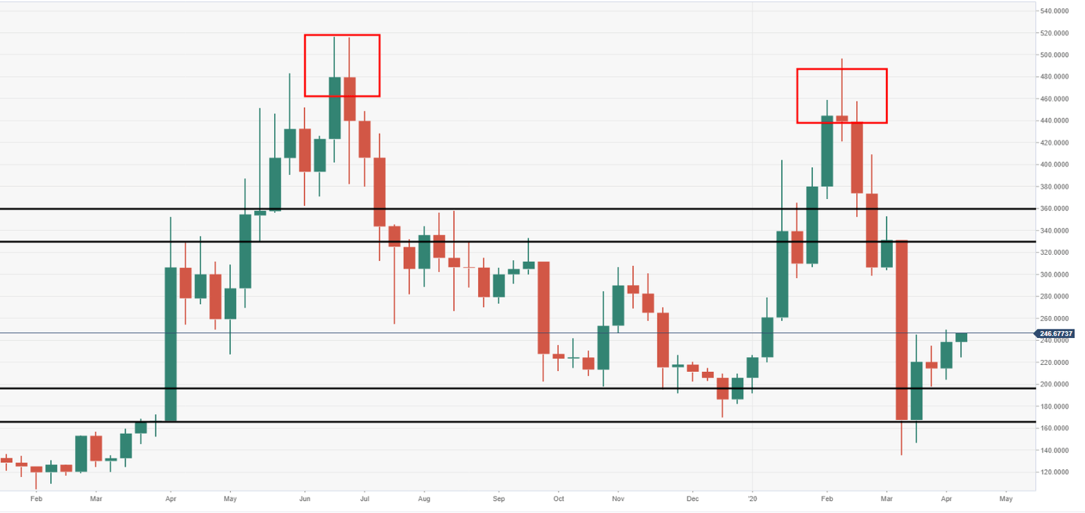 The price was able to produce a closure in the green last week, with further recovery eyed. Weekly resistance should be noted at the $250 price mark.