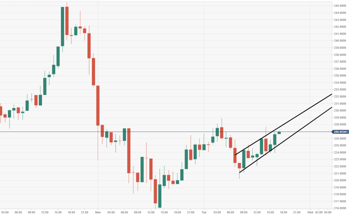 In addition to the bearish daily view, a flag breakout can also be observed via the 60-minute.