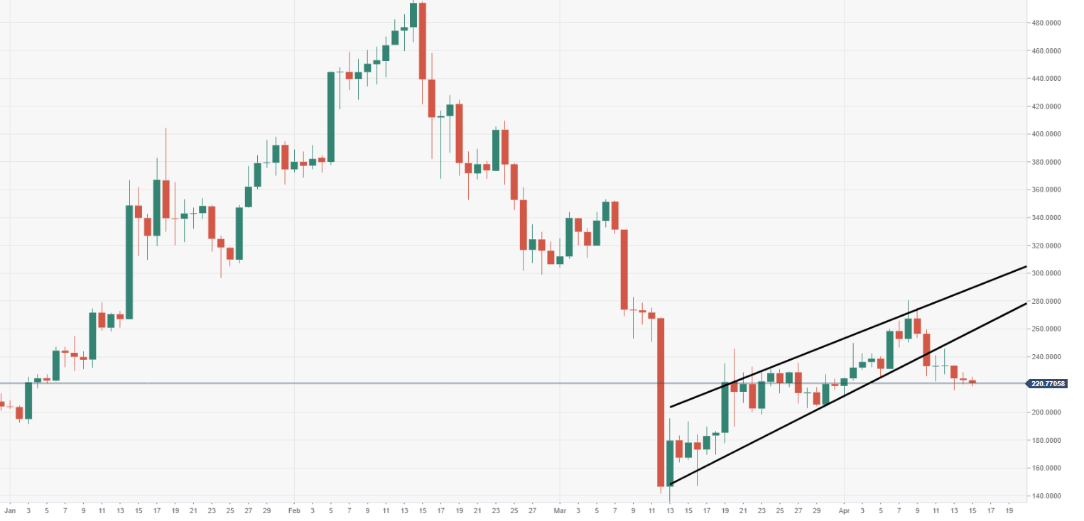 - BCH/USD price action is sitting underneath a breached bear flag.