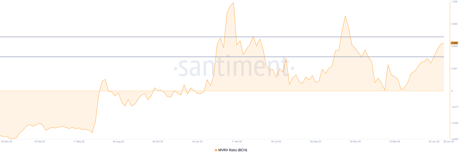 Bitcoin Cash MVRV data. Source: Santiment
