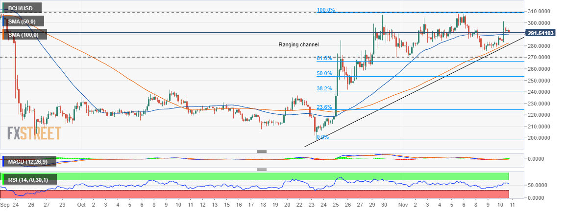 Bitcoin Cash reacted in tandem with the rest of the crypto market on Friday last week. From highs around $310 earlier in the week, BCH dived under $300. The downtrend momentum refreshed gyrated to refresh the range support at $270.