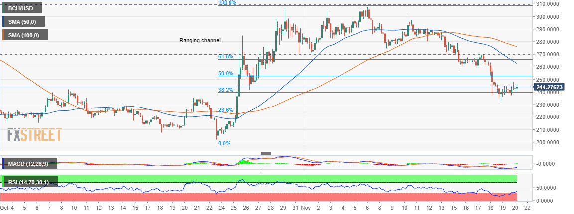- Bitcoin Cash nurtures a weak bullish momentum in a bid to rise above $250 and $260 hurdles.