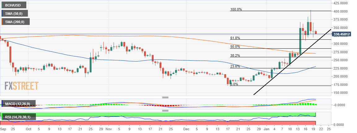 Bitcoin Cash is in the middle of a tactical retreat from the recent high at $403. Reversal towards $400 have become untenable, however, the bulls are careful not lose imbalance and find BCH under the key $300 level.