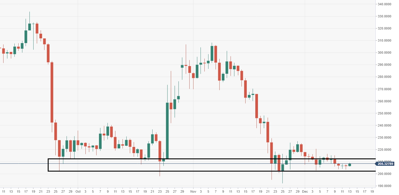 - BCH/USD is sitting on critical weekly support at $208, ahead of of psychological $200 mark.