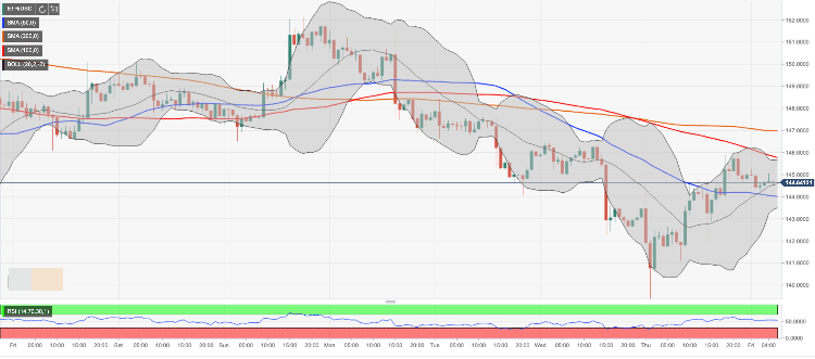 Ethereum recovered from Thursday's low of $139.80; however, the recovery momentum faded away on approach to $146.00. At the time of writing, ETH/USD is changing hands at $144.60, with the initial support created by SMA50 1-hour at $144.00.