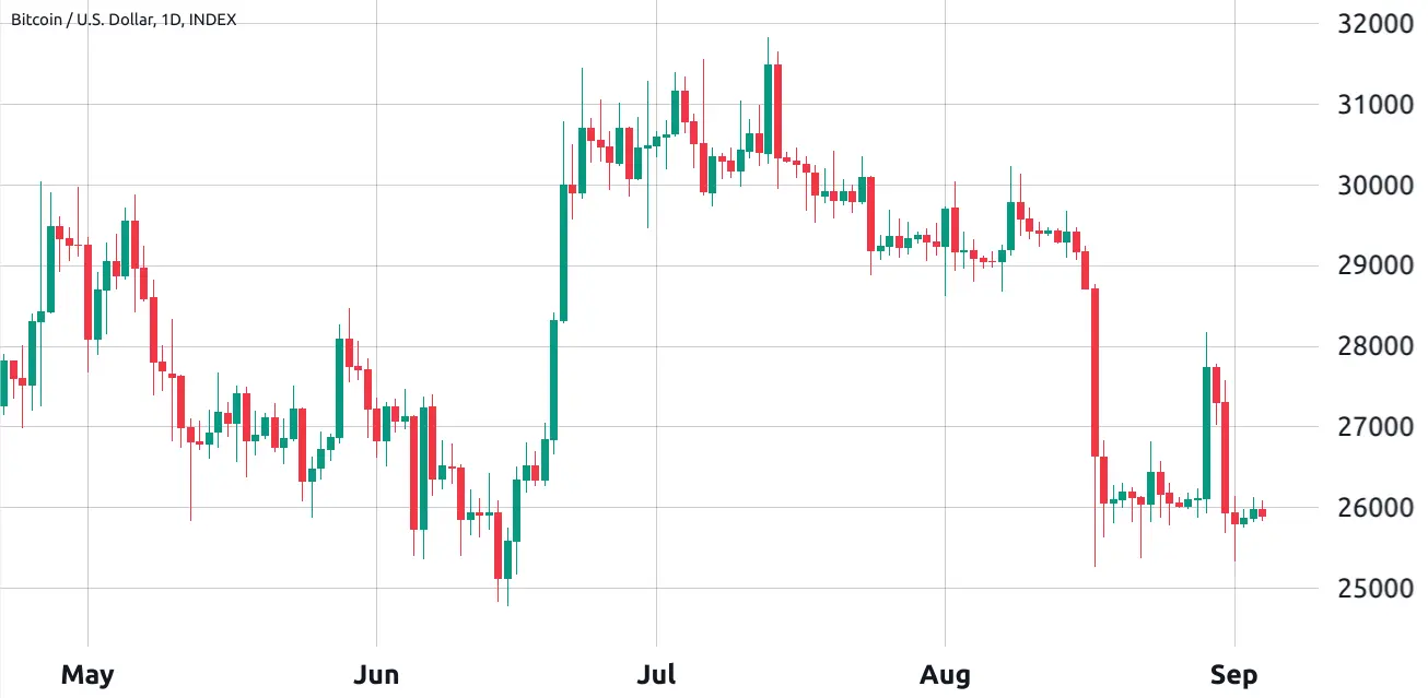 By Aug. 18, the entire 19% rally that occurred following BlackRock's ETF initial filing had fully retracted as Bitcoin moved back to $26,000