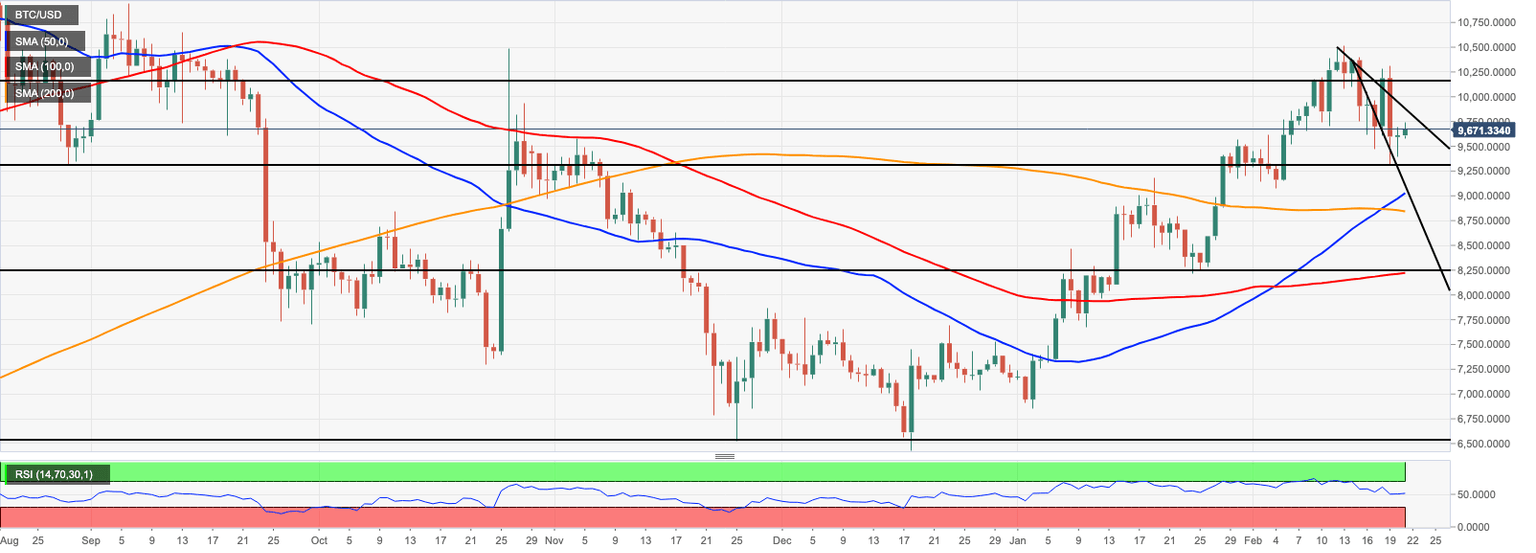 On the downside, The initial support is located at $9,600 with an intraday low at $9,576. A sustainable move below this area will increase the downside pressure and push the price towards the next critical support created by the recent bottom of $9,300.