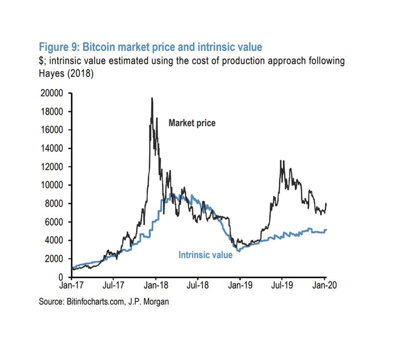 - Bitcoin's intrinsic value if below the market price according to JP Morgan’s strategists.