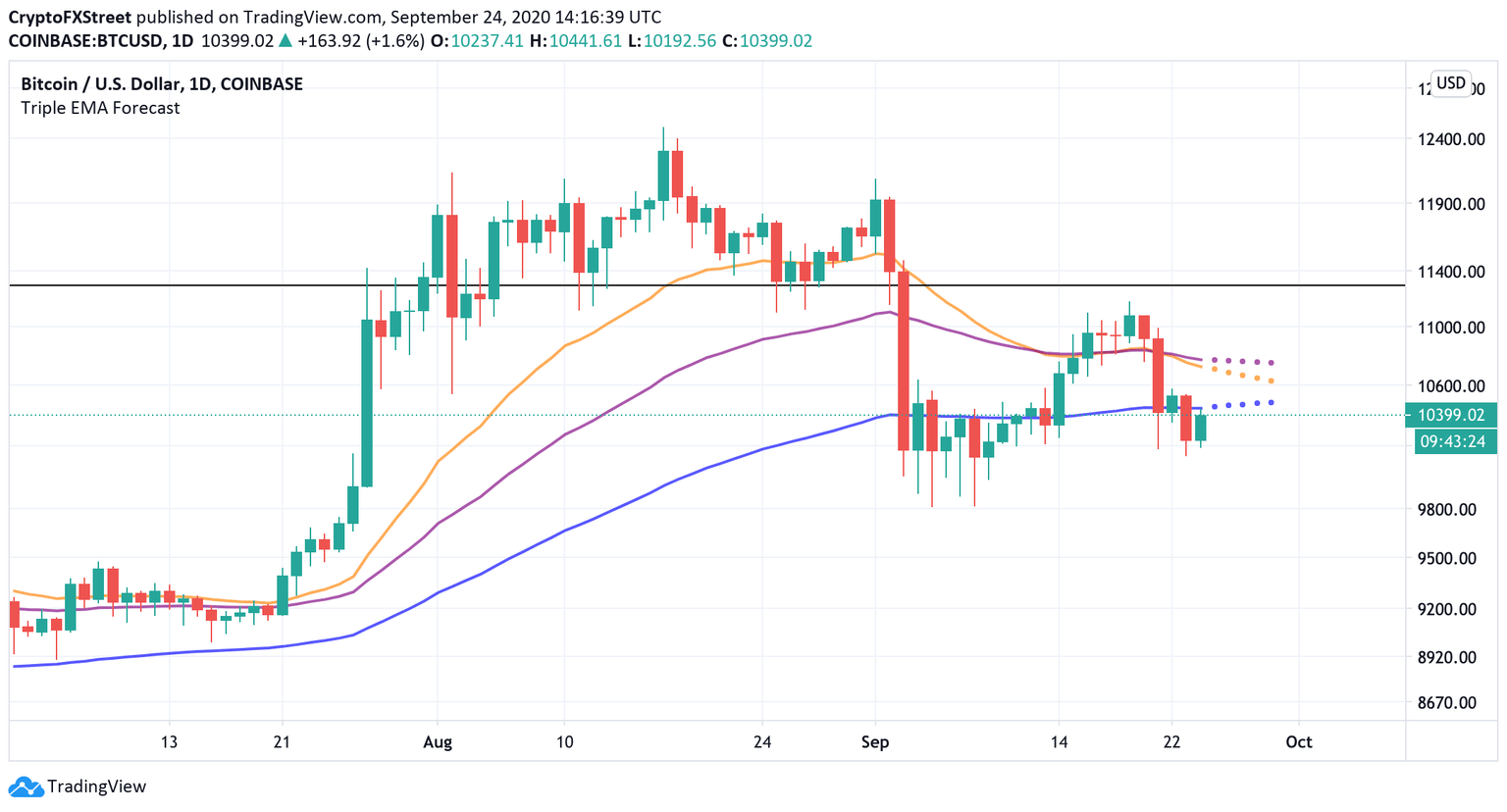 This area may have the ability to weaken the buying pressure seen recently. Holders who have been out of the money may try to break even on their positions, slowing down the recovery. But if Bitcoin moves through this hurdle, it would likely climb to $11,000, followed by $11,500.