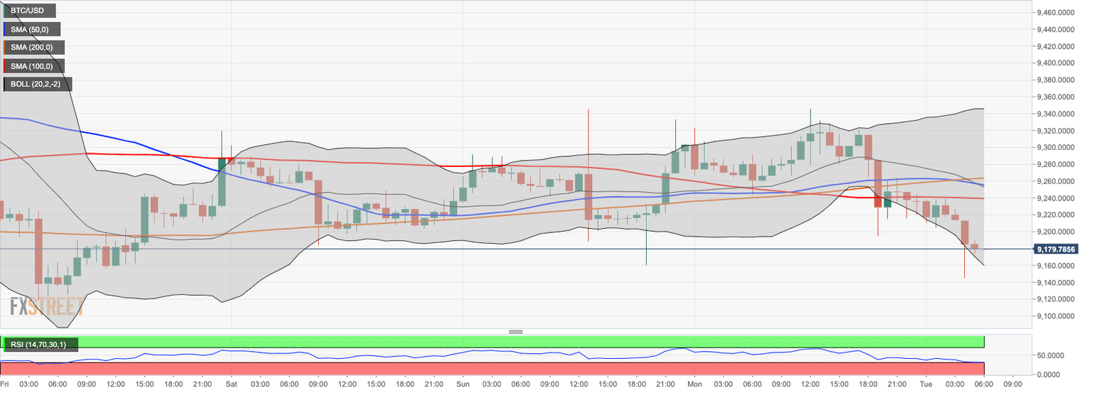 On the intraday charts, BTC/USD struggles to stay inside the recent consolidation range limited by $9,200 on the downside and $9,400 on the upside. The coin touched the intraday low $9,145 and rebounded to $9,180. If it fails to return above $9,200, the selling pressure may increase with the next focus on $9,000. This barrier is strong support and has been attracting buyers during the recent sell-off periods. If it is broken, weekly SMA50 at $8,700 will come into view.