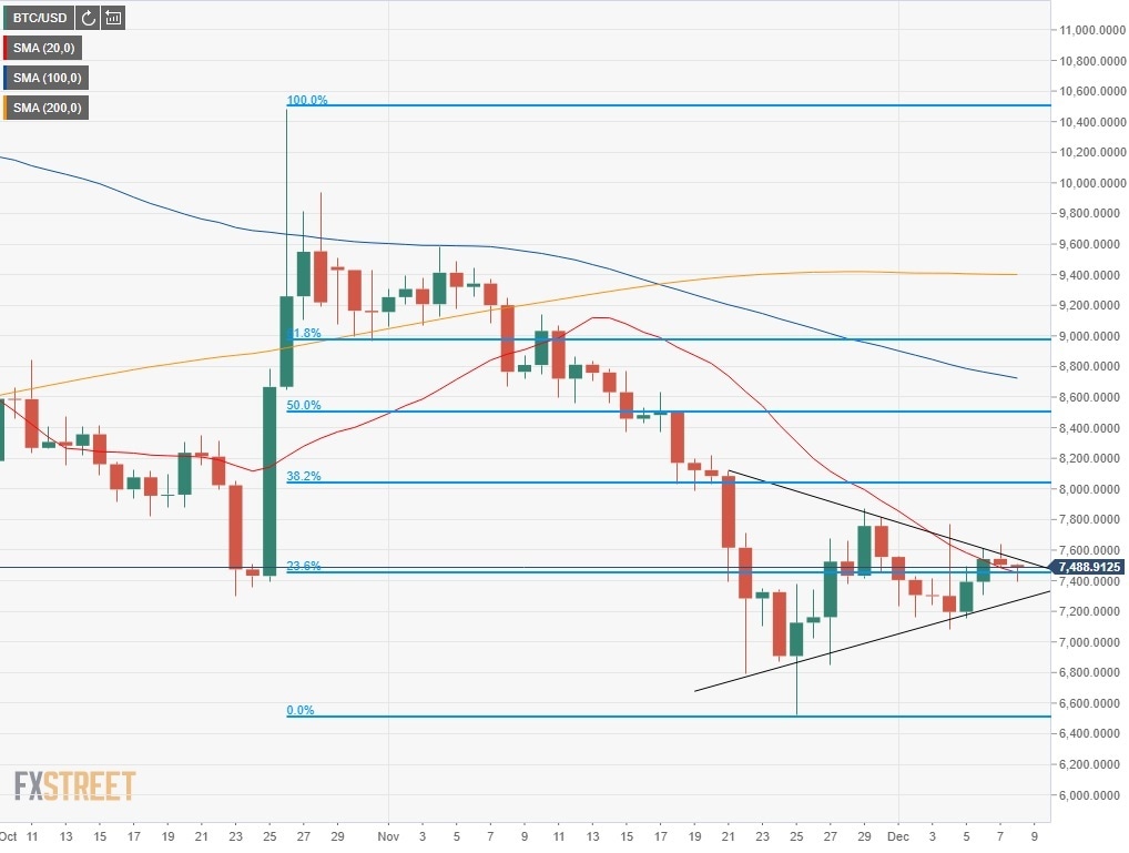 - Bitcoin continues to fluctuate in a tight range around the $7,500 handle.
