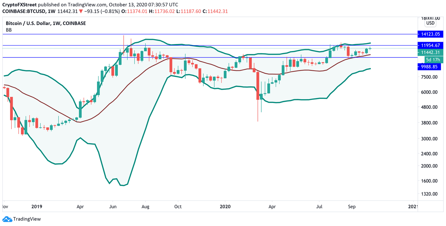 Bitcoin (BTC) tested the intraday high of $11,730 and retreated to $11,450 by the time of writing. The pioneer digital currency stayed mostly unchanged on a day-to-day basis and gained nearly 7% in the last seven days. The price broke free from the tight range on Thursday, October 8, and managed to extend the recovery during the weekend, bringing hope for a new bullish wave ahead.