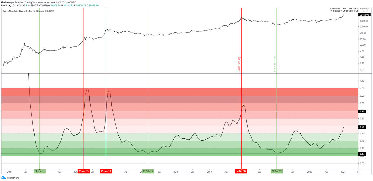 This particular technical index has been extremely accurate at predicting previous market tops and now suggests that bitcoin has plenty of room to rise before a significant correction gets underway.