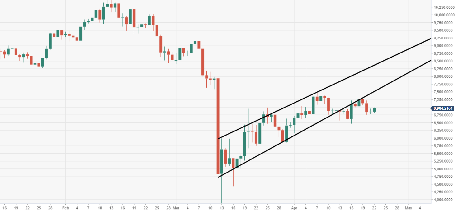 - The next major downside target is eyed at $6500, which if breached could invite a huge wave of selling.