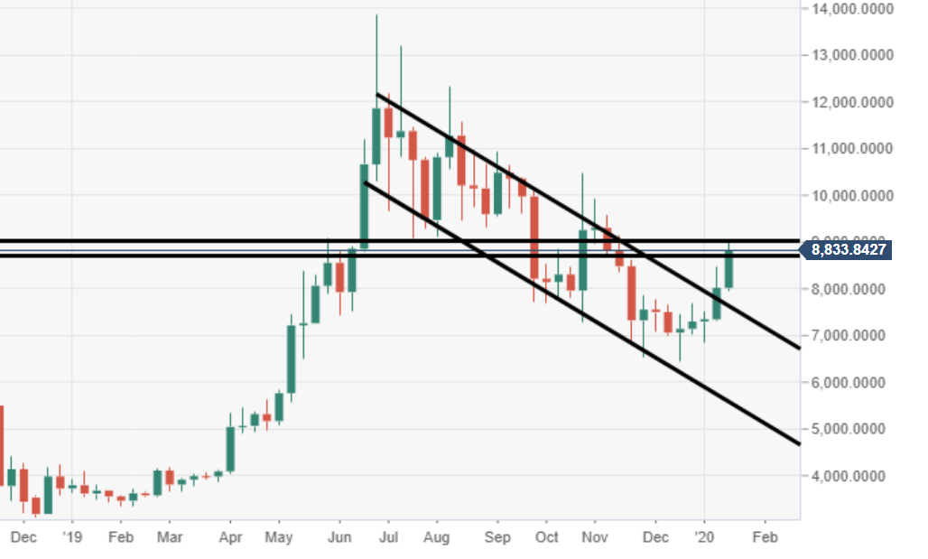 Price action has formed decent support at $8700, daily support, which is critical for Bitcoin’s next attempt at breaking $9000.