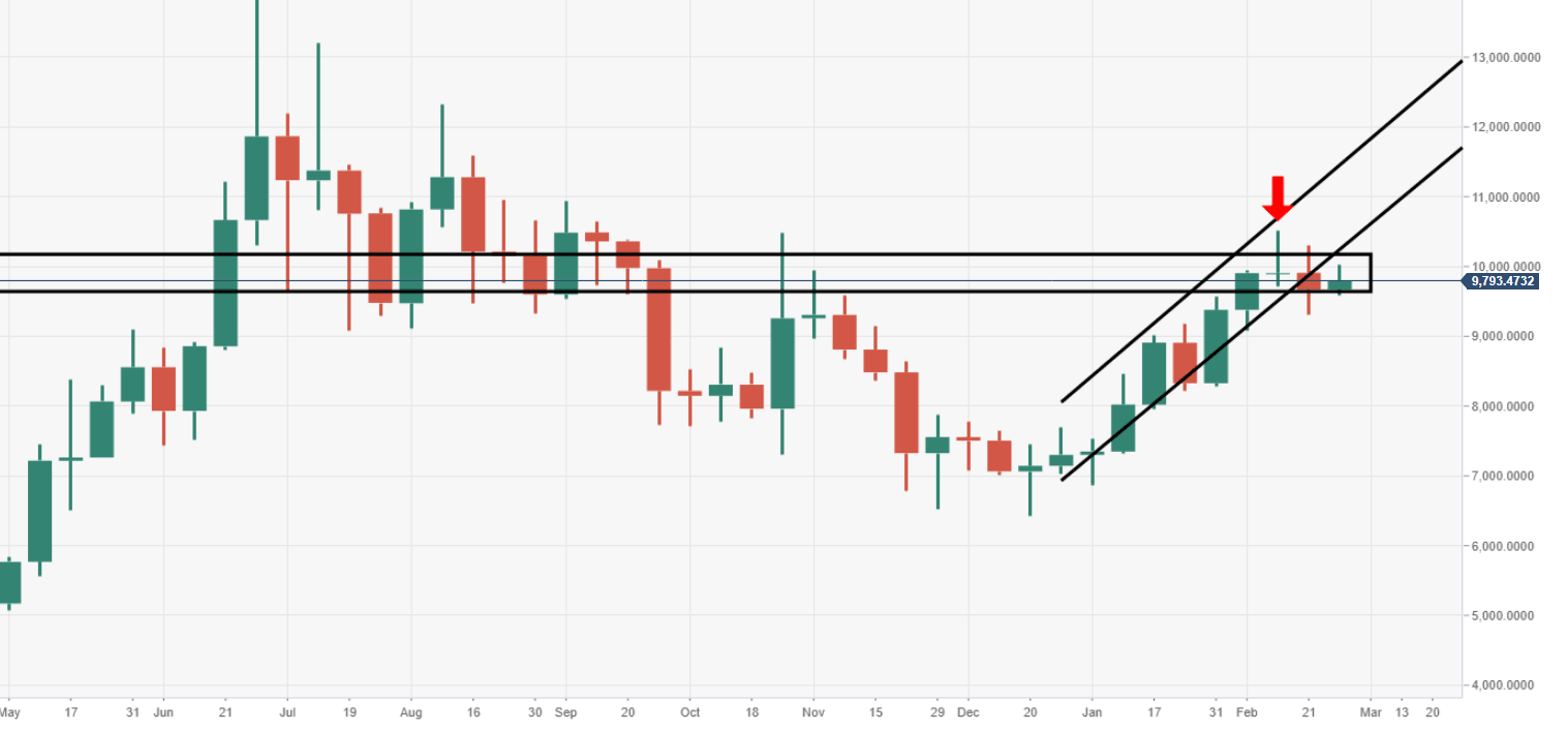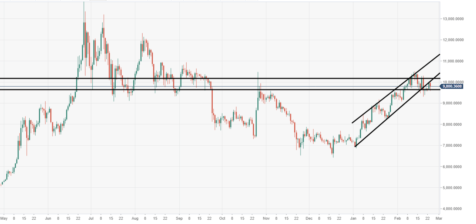- Critical daily support should be noted around the $9500 price area.
