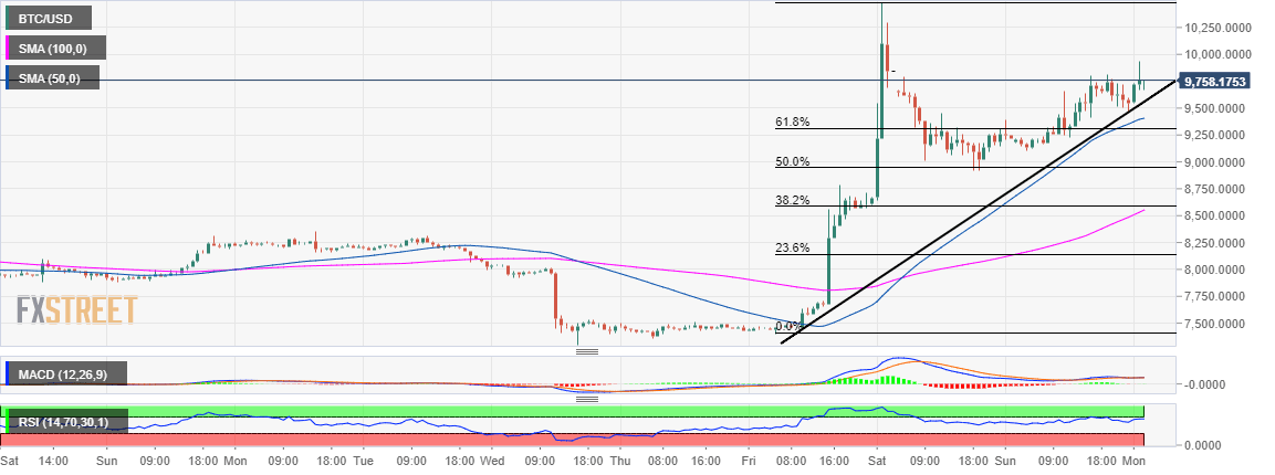 - $10,000 bound Bitcoin resumes the uptrend after testing $9,000.