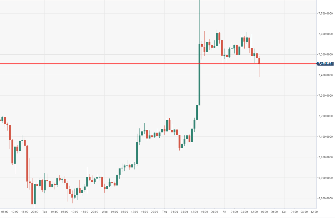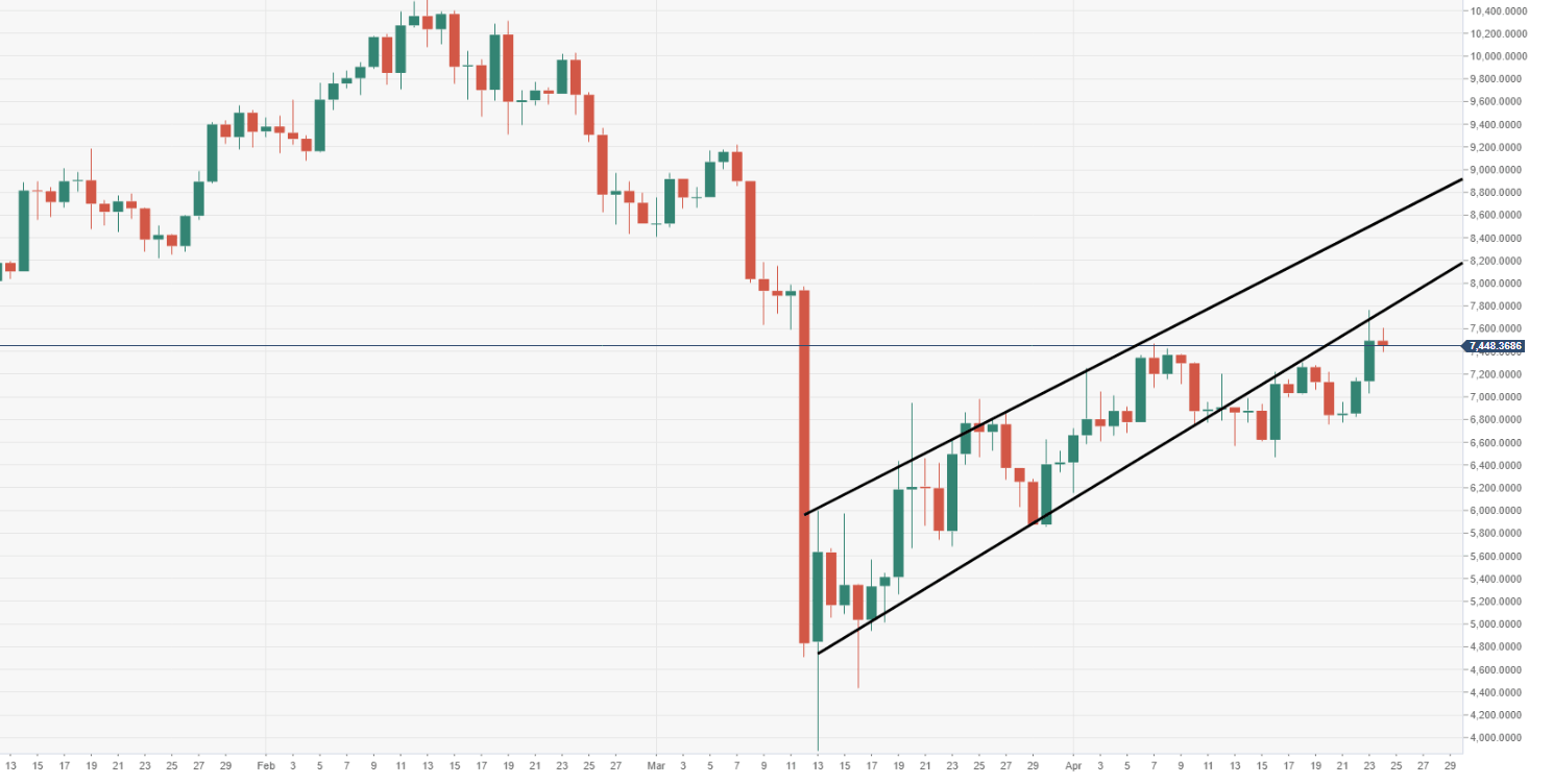 - BTC/USD forced a critical closure above the barrier of $7500.