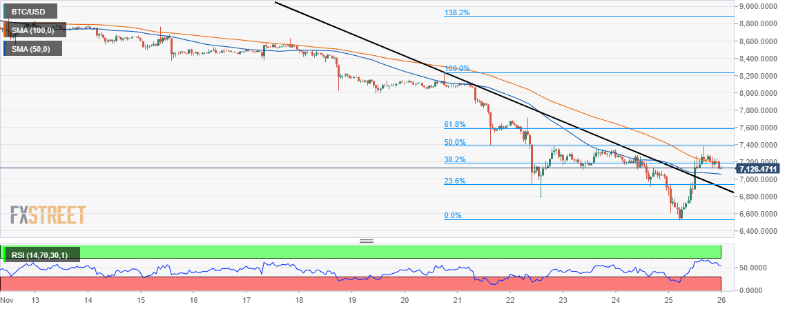 A ray of hope is shining above the cryptocurrency market on Tuesday. The majority of the cryptoassets are in the green after a strenuous few days. Bitcoin, in particular, is trading at $7,139 after adjusting from intraday highs of $7,157. BTC/USD kicked off the day’s trading around $7,125 and has touched a low at $7,123. Amid the expanding volume, Bitcoin’s trend is turning bearish according to the cryptocurrency live rates.