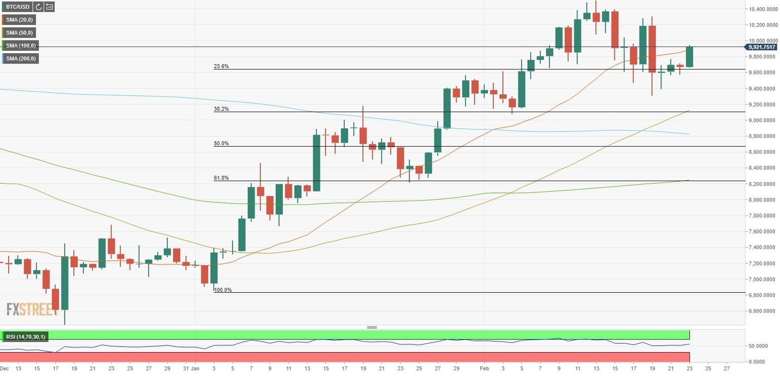 Bitcoin (BTC/USD) posted small losses on Saturday and closed the day above the critical Fibonacci level to gain traction during the Asian trading hours. As of writing, BTC was trading at $9,940, adding 2.75% on the day.