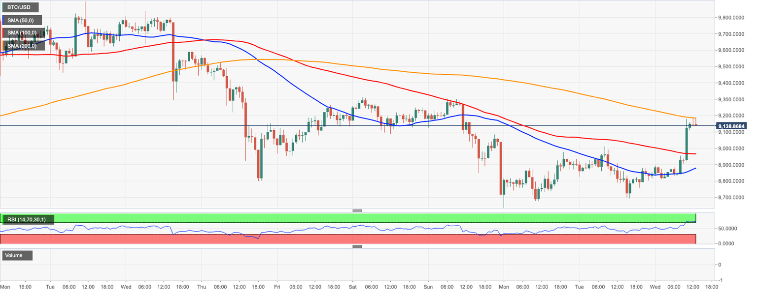 BTC/USD is changing hands at $9,150 amid short-term bullish bias with shrinking volatility. The sustainable move above $9,000 improved the short-term technical picture, though $9,300 still blocks the way and separates BTC bulls from a sustainable recovery. BTC/USD has gained over 3.5% in recent 24 hours, while its market share increased to 65.9%
