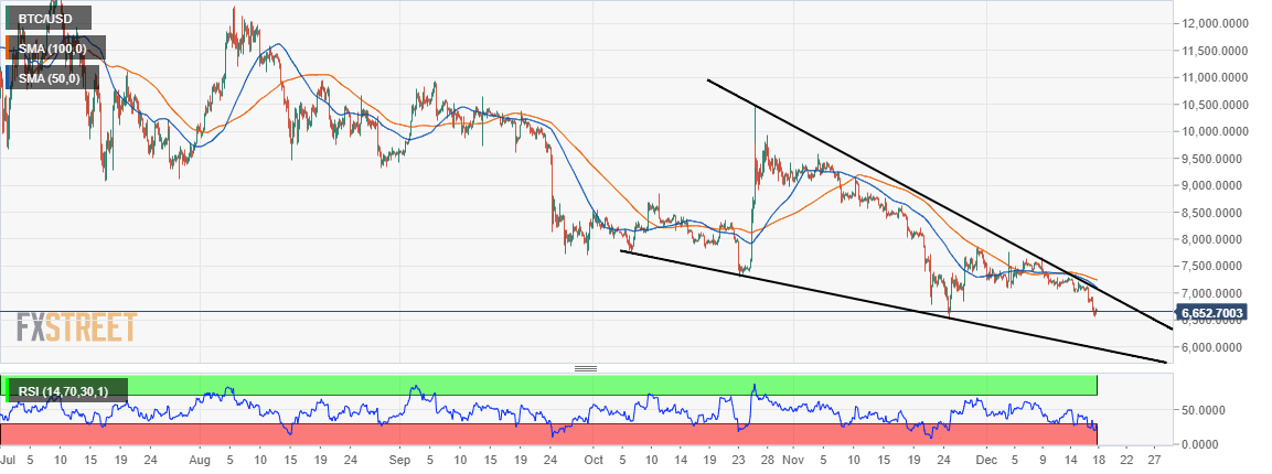 - Bitcoin prevailing technical picture drab hence drabbing the bulls’ desire for recovery above $7,000.