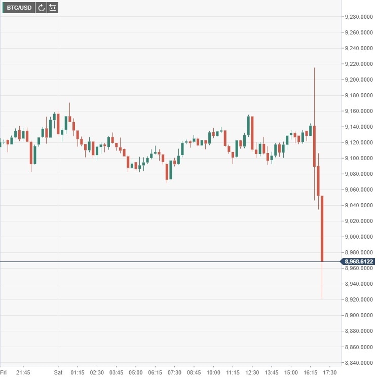 Bitcoin Price Analysis: BTC/USD drops below $9,000 in sudden selloff