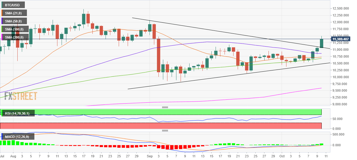 - BTC /USD hits fresh five-week highs to test $11,500 levels.